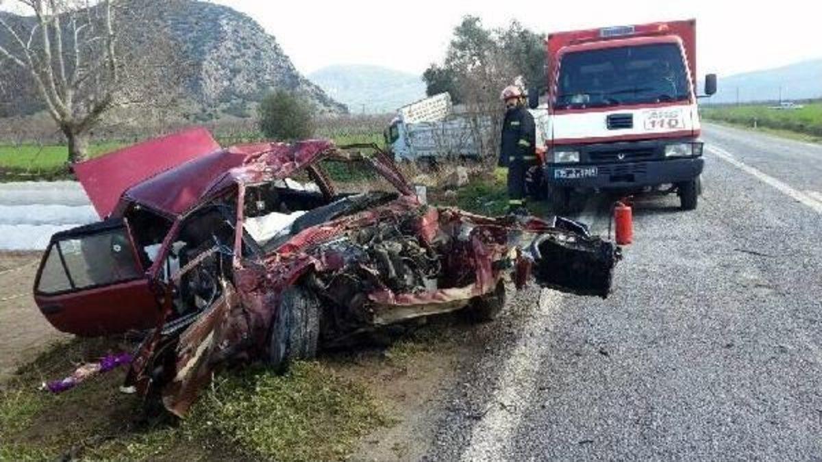 Kamuran KIZILBOĞA/ TİRE Kaza, bugün sabah saatlerinde, Tire- Selçuk karayolu üzerinde, Alaylı Mahallesi yakınlarında meydana geldi. Yönetimindeki 50 EV 663 plakalı kamyonla Selçuk'tan Tire yönüne giden 38 yaşındaki Habip Taş, önündeki hatlı minibüsün yavaşlaması sonucu hızını düşürdü. Ardından minibüse çarpmamak için sola manevra yapıp karşı şeride geçen Taş'ın kullandığı kamyonla, karşıdan gelen 31 yaşındaki Feridun Kırıcı yönetimindeki 35 T 0558 plakalı otomobil çarpıştı. Kazada otomobil sürücüsü Kırıcı öldü, eşi 30 yaşındaki Figen Kırıcı ile kamyon şoförü Taş yaralandı. İhbar üzerine kaza yerine gelen acil yardım ekipleri, yaralıları ambulansla Tire Devlet Hastanesi'ne kaldırdı. Tedaviye alınan Figen Kırıcı'nın hayati tehlikesinin bulunduğu belirtildi. Hafif yaralanan kamyon şoförü Habib Taş, tedavisinin ardından gözaltına alındı. Jandarma, kazayla ilgili soruşturma başlattı.