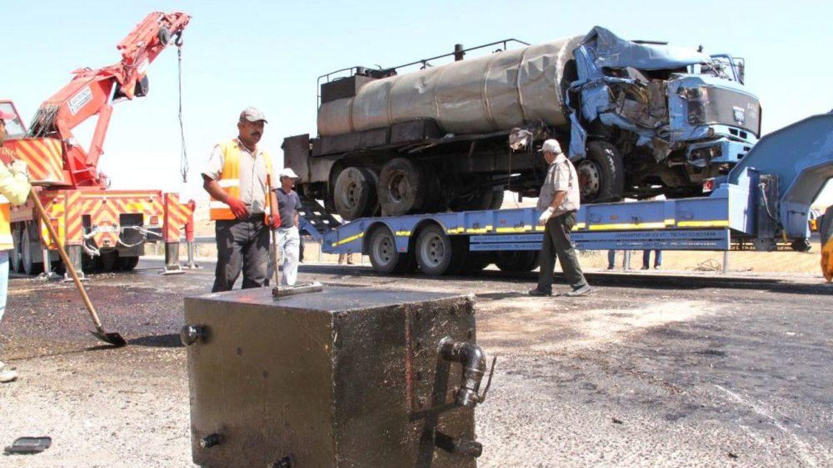 Polatlı’dan Haymana’ya asfalt malzemesi taşıyan Ankara İl Özel İdaresi'ne ait Hüseyin Çınar (55) yönetimindeki 06 BP 7863 plakalı kamyon Haymana karayolu 20’inci kilometresinde saman balyası almaya giden Refik Poyraz idaresindeki 74 BZ 921 plakalı kamyonla kafa kafa çarpıştı.