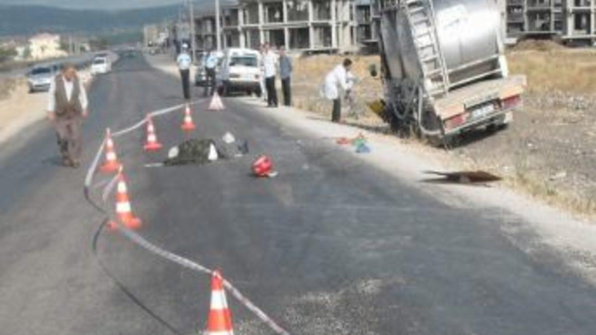 Balıkesir'in Gönen ilçesinde, motosikletle ilerlerken yola çıkan kamyonun altına giren sürücü feci şekilde can verdi.