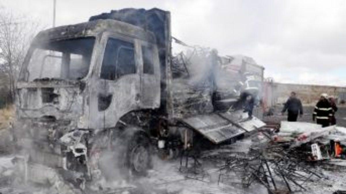 Aksaray’da, sürücüsünün mola verdiği sırada kamyonda bilinmeyen bir nedenle yangın çıktı. Kamyonda uyuyan sürücü ve arkadaşı ağır yaralandı.Olay, Aksaray Adana Karayolu'nun 10. kilometresinde meydana geldi. 31 SA 014 plakalı kamyonla Aksaray’dan Adana istikametine seyreden Serdal Aldıç (39), sabah erken saatlerde uyumak için bebek arabası yüklü kamyonunu bir petrol istasyonunun parkına çekti. Sürücü Serdal Aldıç arkadaşı Ata Sağaltıcı (46) ile birlikte kamyonun içinde uyudu. Yaklaşık 1,5 saat sonra kamyon bilinmeyen bir nedenle yanmaya başladı. Alevler kısa sürede kamyonu sararken, yangından habersiz uyuyan iki kişi alevlerin içinde kaldı. Çevreden geçen diğer sürücüler tarafından fark edilen yangın itfaiye ve 112 ekiplerine bildirilirken, kısa sürede olay yerine gelen 112 Acil Yardım ekipleri yanan yaralıları kamyondan çıkararak ilk müdahalelerini olay yerinde yaptı. Ardından yaralılar ambulansla Aksaray Devlet Hastanesi’ne kaldırılarak tedavi altına alındı. İtfaiye ekipleri 1 saat süren çalışmayla yangını söndürebilirken,kamyon hurdaya döndü.Jandarma ekipleri yangınla ilgili soruşturma başlattı.