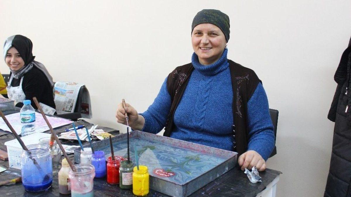 Osmangazi Belediyesi, bir yandan vatandaşları meslek sahibi yaparken, bir yandan da hastalara moral kaynağı oluyor.Osmangazi Belediyesi Meslek Edindirme Kursları (OSMEK), toplumun her kesiminden ilgi görüyor. Meslek öğrenip iş sahibi olmak, yaptıklarını satıp aile bütçesine katkı koymak veya boş vakitlerini değerlendirmek isteyenler OSMEK’in yolunu tutuyor. Kursiyerler, OSMEK’in meslek edindirmenin yanında psikolojik ve bedenî rahatsızlıkları olanlara pozitif enerji verdiğini belirtiyor. 1,5 yıl önce kanser hastalığına yakalanan 52 yaşındaki Gönül Koç, ameliyatın ardından tedavi sürecine devam ederken, evde oturup moralini bozmak yerine OSMEK’te ebru kursuna başladığını söyledi.Kurs ortamının ve ebrunun kendisine huzur verdiğini dile getiren Koç, “Sağlığım iyiye gidiyor. Burada moral depoladım. Arkadaşlarımı, hocamı çok seviyorum. Ortamımız çok güzel. Burası bana huzur veriyor, ilaç gibi geliyor. Ebruya küçüklüğümden beri ilgim vardı, çok merak ediyordum. Şimdi öğrendim. Herkese tavsiye ederim. Büyük bir huzur içindeyim. Hasta olanlar eve kapanmasınlar. Evde durdukça morali bozuluyor insanın” dedi.