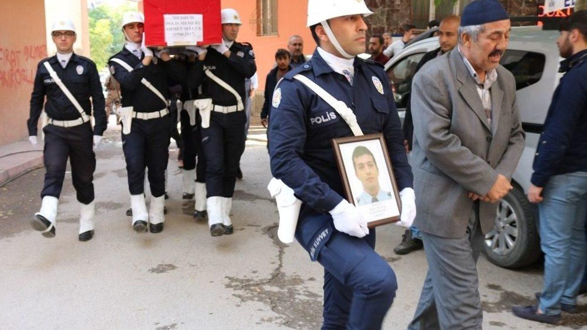 29 yaşındaki mide kanserine yenik düşen polis memuru Ahmet Selçuk, memleketi Elazığ’da son yolculuğuna uğurlandı.Alınan bilgiye göre, Şırnak İl Emniyet Müdürlüğü Narkotik Suçlarla Mücadele Şubesi’nde görevli 29 yaşındaki polis memuru Ahmet Selçuk, yakalandığı mide kanseri nedeniyle tedavi gördüğü hastanede dün hayatını kaybetti.Polis memuru Selçuk’un naaşı memleketi Elazığ’a getirildi. Bugün Bölge Camisinde öğle namazına müteakip hayatını kaybeden polis memuru için cenaze töreni düzenlendi.Cenaze namazına İl Emniyet Müdür Yardımcısı Engin Çelik, Gıda Tarım ve Hayvancılık İl Müdürü Turan Karahan, bazı kurum müdürleri, emniyet personeli, yakınları, ailesi ve çok sayıda vatandaş katıldı.Cenaze namazının ardından Selçuk’un naaşı, Harput Mezarlığındaki polis şehitliğinde toprağa verildi.