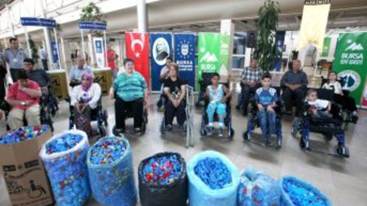 Bursa Kent Konseyi Engelliler Meclisi tarafından yürütülen ‘Altın Kapak Sandalyeye’ ve ‘Üç Yürek El Ele’ projesi kapsamında alınan 30 yeni akülü araç, düzenlenen törenle ihtiyaç sahibi özürlülere teslim edildi. Bursa Büyükşehir Belediye Başkanı Recep Altepe, "Eşimle beraber gittiğimiz toplantılarda kapakları istiyoruz." dedi.