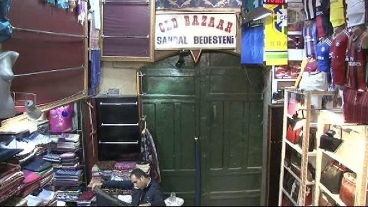 KAPALIÇARŞI'da Sandal Bedesteni'nde bulunan esnaf, kendilerine gönderilen dükkanlarını boşaltma tebligatına karşı eylem yapıyor.