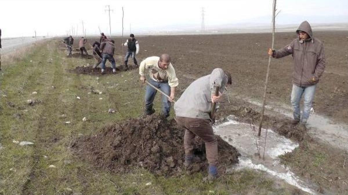 Eser AYDIN/MUŞ, Mevsim normalleri üzerindeki hava sıcaklıkları, Muş'ta fidan ve ağaç dikim sezonunun uzamasını sağladı. Bu yıl büyük çapta ağaçlandırma, erozyon ve rehabilitasyon çalışmaları yapan Orman İşletme Müdürlüğü, Orman ve Su İşleri Bakanlığı'nın hazırladığı projeler kapsamında dikim çalışmalarına devam ediyor. Henüz kar yağmadığı için Muş- Bingöl karayoluna 20 günde akasya, dişbudak, akağaç, çınar olmak üzere şimdiye kadar 8 bin fidan dikildi. Fidan dikiminde çalışan işçilere günlük 50 lira yevmiye verildiğini belirten Ağaçlandırma ve Toprak Muhafaza şefi Oğuzhan Çobanoğlu, şöyle dedi: