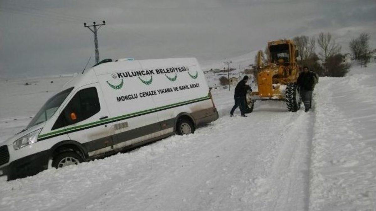 Yoğun kar yağışı tüm yurtta etkisini gösterirken Malatya’da da yüksek rakımlı ilçelerde yağışlar etkili oluyor. Kar yağışının etkili olduğu Kuluncak ilçesinde yolda kalan cenaze aracı belediye ekiplerince çıkarıldı.Edinilen bilgile göre, Ankara’da hayatını kaybeden Satiş Yıldırım’ın (81) cenazesi toprağa verilmek üzere memleketi Malatya’nın Kuluncak ilçesine getirildi. Ancak cenaze nakil aracı cenazenin defnedileceği Başören Mahallesi’ne giderken yoğun kar nedeniyle kayarak yoldan çıktı. Cenaze aracının karda mahsur kalması ile durum Malatya Büyükşehir Belediyesi ekiplerine bildirildi. Büyükşehir karla mücadele ekipleri kısa süre sonra kara saplanan cenaze aracına ulaşarak yolu açtı ve aracı kurtardı.Belediye ekipleri ayrıca kalan 17 kilometrelik mahalle yolunu da ulaşıma açarak cenaze aracının mezarlığa ulaşmasını sağladı. Daha sonra cenaze burada defnedilirken vatandaşlar ekiplere teşekkür etti.