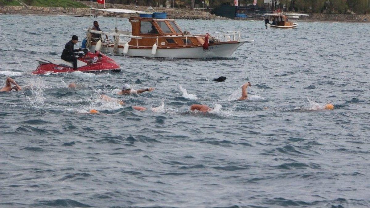 Muğla’nın Datça ilçesinde düzenlenen Açık Deniz Kış Yüzme Maraton’unda ‘Karabaş’ isimli köpek yüzücülerle birlikte 2 kilometre yüzdü.Bu yıl 12.’si düzenlenen Açık Deniz Kış Yüzme Maratonu renkli görüntülere sahne oldu. Yarış startının verilmesiyle yüzücülerle birlikte denize atlayan bir de hesapta olmayan yarışçı vardı. Karabaş, yarışan 500 sporcu arasında yüzerek yaklaşık 2 kilometrelik mesafe kat etti. Yarışın güvenliğini sağlayan teklerden biri Karabaşı tekneye almaya çalışsa da o buna hiç yanaşmadı. Maratonu tamamlayan Karabaş’ın soğuktan titrediği gören duyarlı vatandaşlar Onu havluyla kuruladı. Vücut ısısı yerine gelen Karabaş, kıyıda yarışçı arkadaşlarını seyretti.