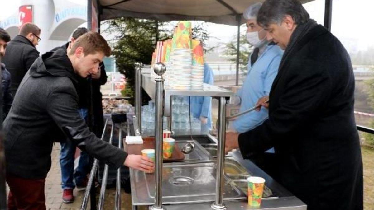 Karabük Üniversitesi'nde ikinci dönemin ilk gününde öğrencilere çorba ikram edildi. Rektör Prof.Dr. Refik Polat, kampüs girişinde kurulan standın başına geçerek kazanlardaki çorbaları bardaklara doldurup öğrencilere verdi. Öğrencilerle sohbet eden Prof.Dr. Polat, dekanlar, akademik ve idari personele de çorba ikramında bulundu.