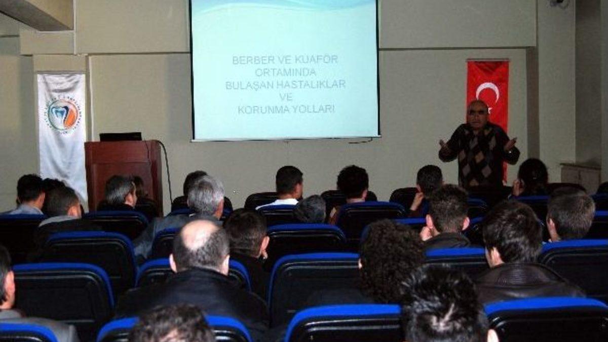 Karabük'te İl Sağlık Müdürlüğü ekiplerince berber ve kuaförlere hijyen eğitimi verildi.