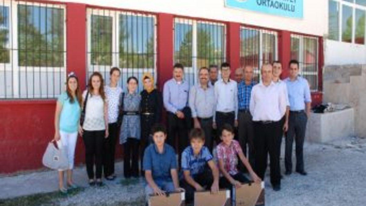 Karamanlı Cumhuriyet Ortaokulu, Seviye Belirleme Sınavları'nda (SBS) başarılı olan 3 öğrencisine dizüstü bilgisayar hediye etti.