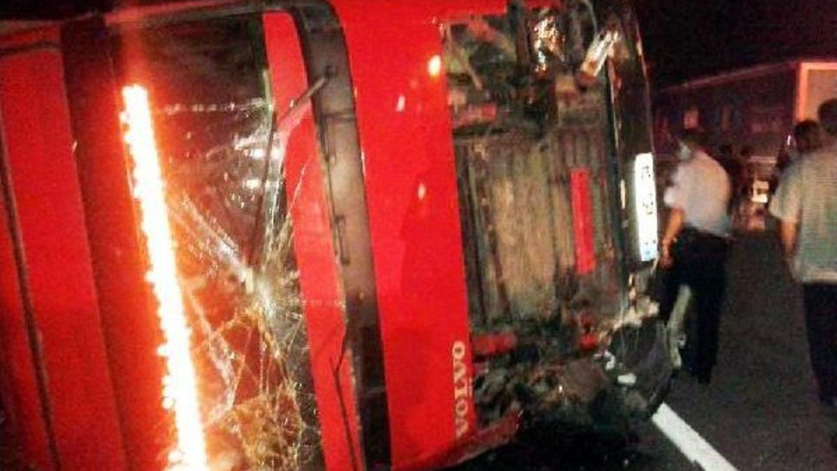 Ahmet ÖZ/KARAMÜRSEL Kaza, dün saat 23.30 sıralarında E-130 Karayolu Karamürsel ilçe merkezi geçişinde meydana geldi. M.Z.Ç. yönetimindeki 31 AZJ 34 plakalı TIR, sürücünün kontrolü kaybetmesi sonucu bariyerlere çarptıktan sonra devrildi. Bu kazayı gören aynı yönde ilerleyen 34 BZ 0770 plakalı otobüsün şoförü S.Ş. ani fren yapınca, arkadan gelen taksi önce otobüse sonra bariyerlere çarptı. Kazada TIRşoförü ile takside bulunan 2 kişi yaralandı.