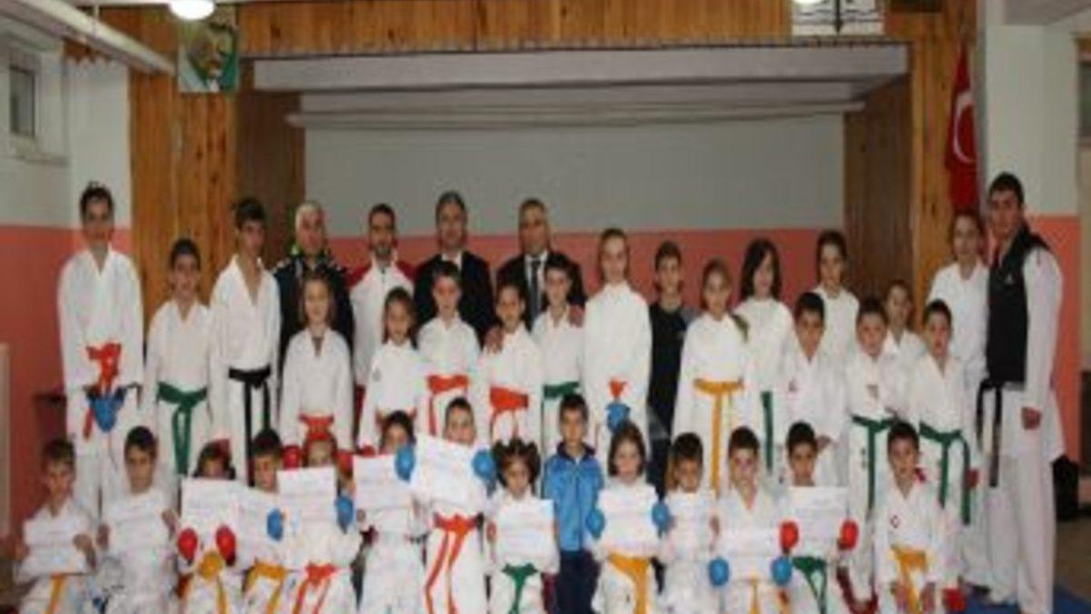 Cumhuriyet İlköğretim Okulu salonunda düzenlenen kursun belge törenine Vakfıkebir Halk Eğitimi Merkezi Müdürü M. Birol Yüksek, Okul Müdürü Suat Soylu, beden eğitimi öğretmeni Halil Haliloğlu ve sporcular katıldı. Törende kısa bir açılış konuşması yapan Okul Müdürü Suat Soylu, bir yıl gibi kısa bir süre içerisinde oluşturdukları karate takımından çok şeyler beklediklerini, Türkiye çapında başarılara imza atacaklarına inandıklarını söyledi. Daha sonra sarı kuşaktan başarılı olarak turuncu kuşağa yükselen sporculara belgeleri verildi. İlk belgeyi Halk Eğitimi Merkezi Müdürü M.Birol Yüksek verdi.