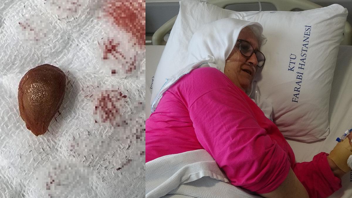 Trabzon'un Akçaabat ilçesinde yaşayan 66 yaşındaki Fatma Karabacak'ın yuttuğu karayemiş çekirdeği soluk borusundan akciğerine gitti, akciğerin bir kısmını çürüttü. Yuttuğu karayemiş yüzünden akciğerinin bir bölümü ameliyatla alınan Karabacak, eski sağlığına kavuşmanın mutluluğunu yaşıyor.