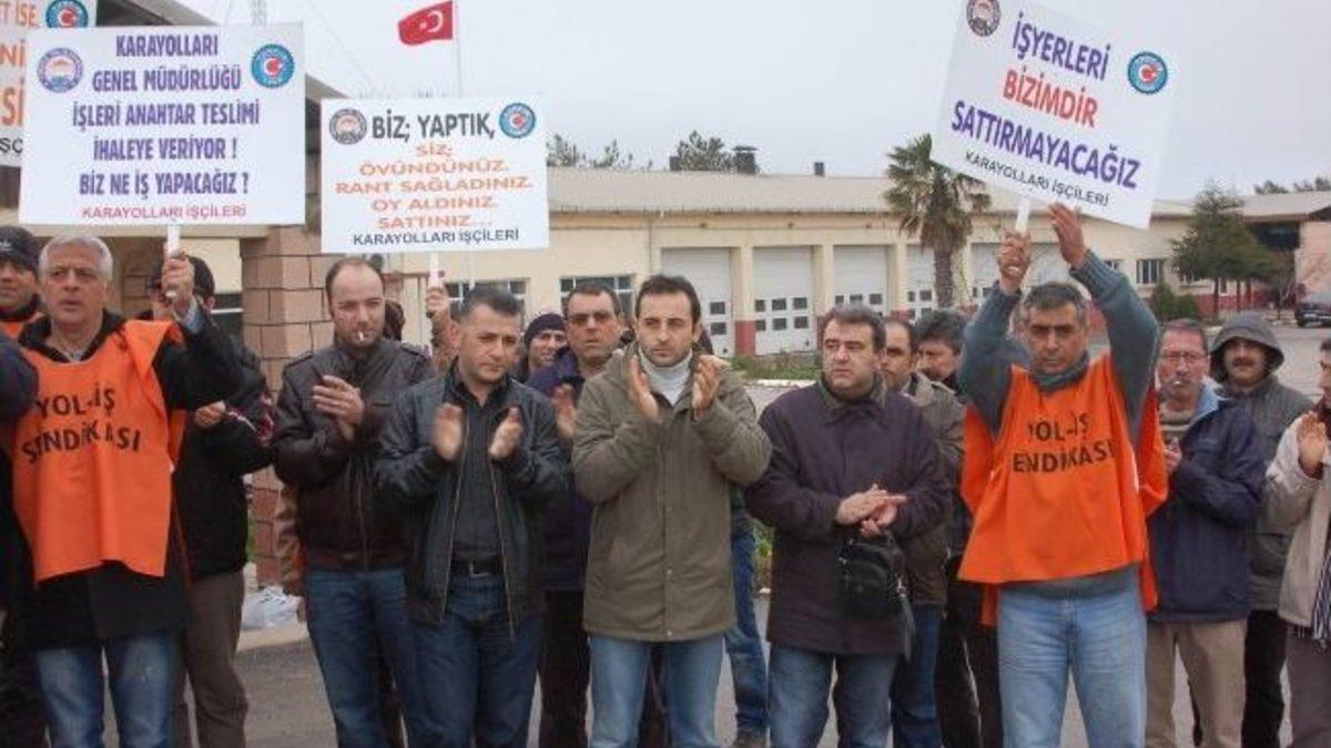 Balıkesir'in Bandırma ilçesinde, yol bakım hizmetlerinin özelleştirilmesini protesto eden Yol-İş Sendikası'na bağlı Karayolları çalışanları, 146. Şube Müdürlüğü önünde eylem yaptı.