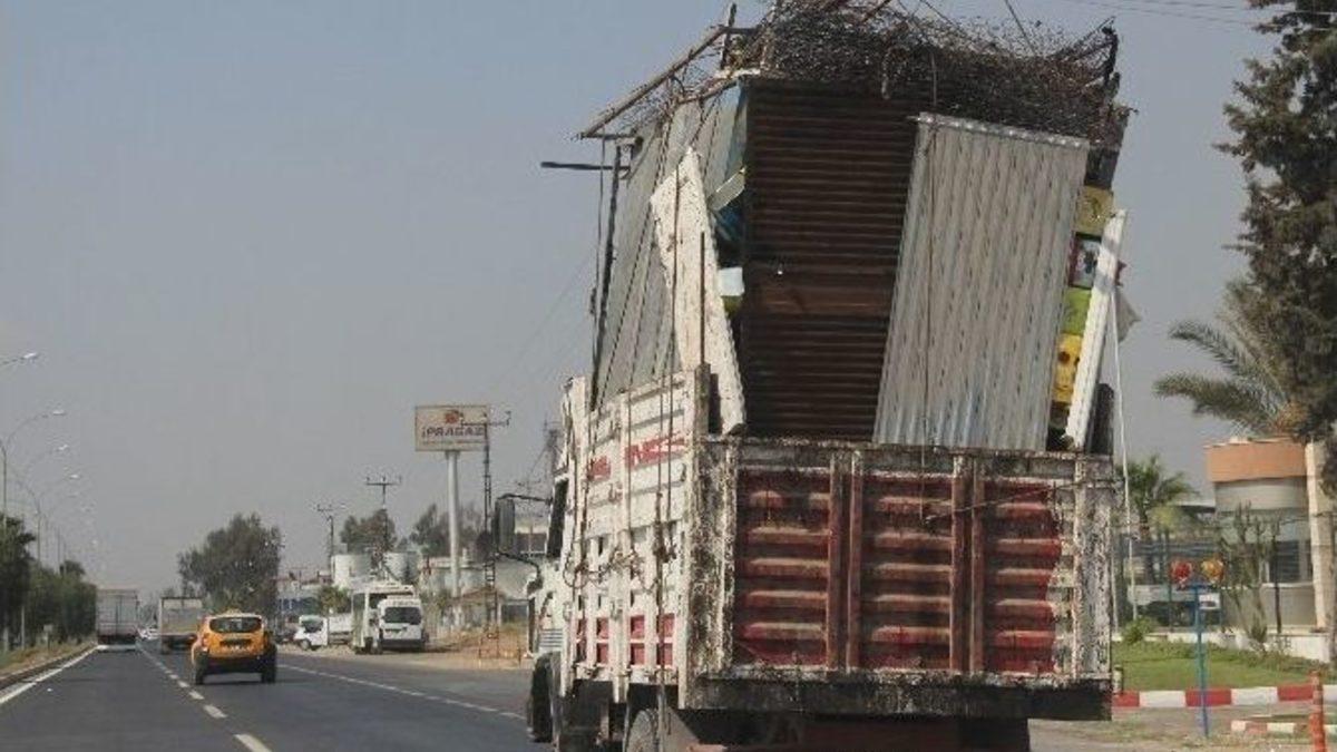Adana’da aşırı yükle D-400 karayolunda trafiğe çıkan kamyonet görenleri hayrete düşürdü.Hurda demir yüklü bir kamyonet, D-400 Karayolunda Adana’dan Mersin istikametine giderken, trafikteki diğer araçlar için de tehlike oluşturdu. Aşırı yük nedeniyle sağ tarafa eğilen ve yan yatma tehlikesi olan kamyonetin sürücüsü, tehlikeye aldırmadan yoluna devam etti. Araçta aşırı yük olmadığını, kamyonetin lastiğinin patladığı için eğik göründüğünü iddia eden sürücü, daha sonra yoluna devam etti.