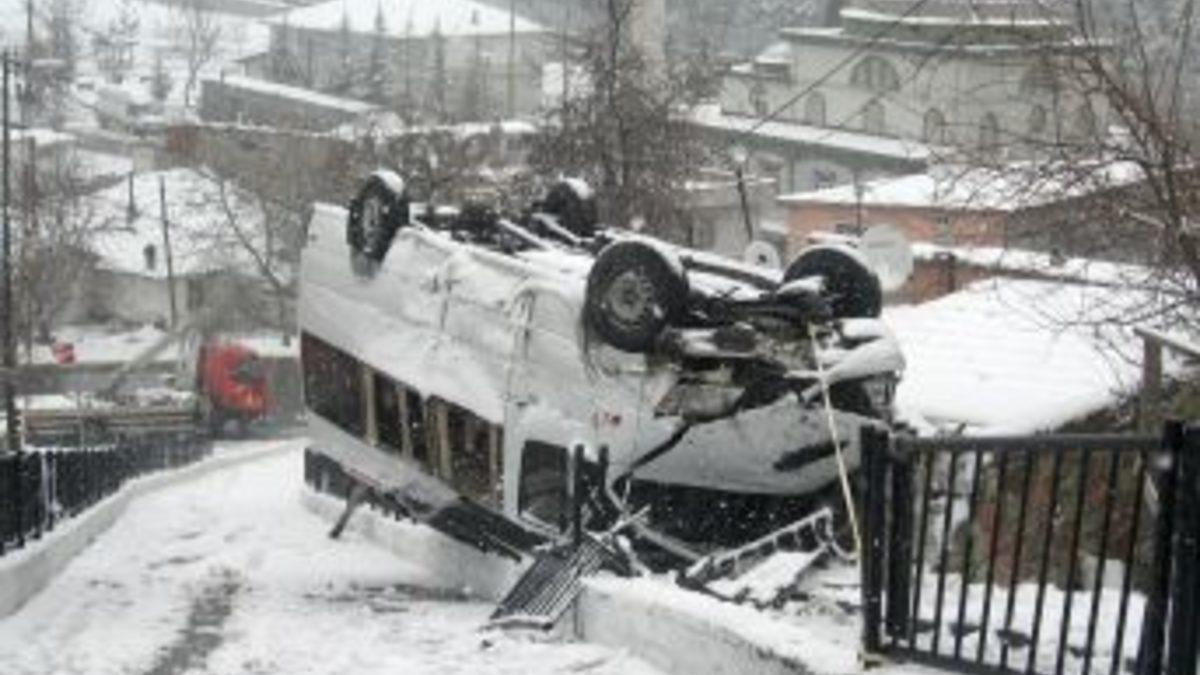 İstanbul’da etkili olan yağışı kazalara neden oldu. Gaziosmanpaşa'da bir servis minibüsü, karlı yokuşta duramayarak yaşlı bir kadının tek başına yaşadığı gecekondu üzerine devrildi. Olayda ölen ya da yaralana olmadı. Mahalle sakinleri, sokağın tuzlanmadığını belirterek belediyeyi suçladı.