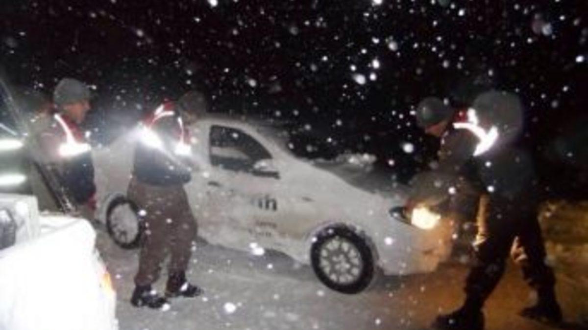 Karda Mahsur Kalan Araçları Jandarma Kurtardı