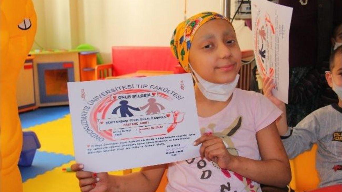 Hastanede 1 aydan buyana lösemi hastalığı sebebiyle tedavi altına alınan 10 yaşındaki Sevde Nur Gülçiçek, karne almanın çok güzel bir duygu olduğunu belirterek, kendilerine eğitim veren öğretmenlerine teşekkür etti.
