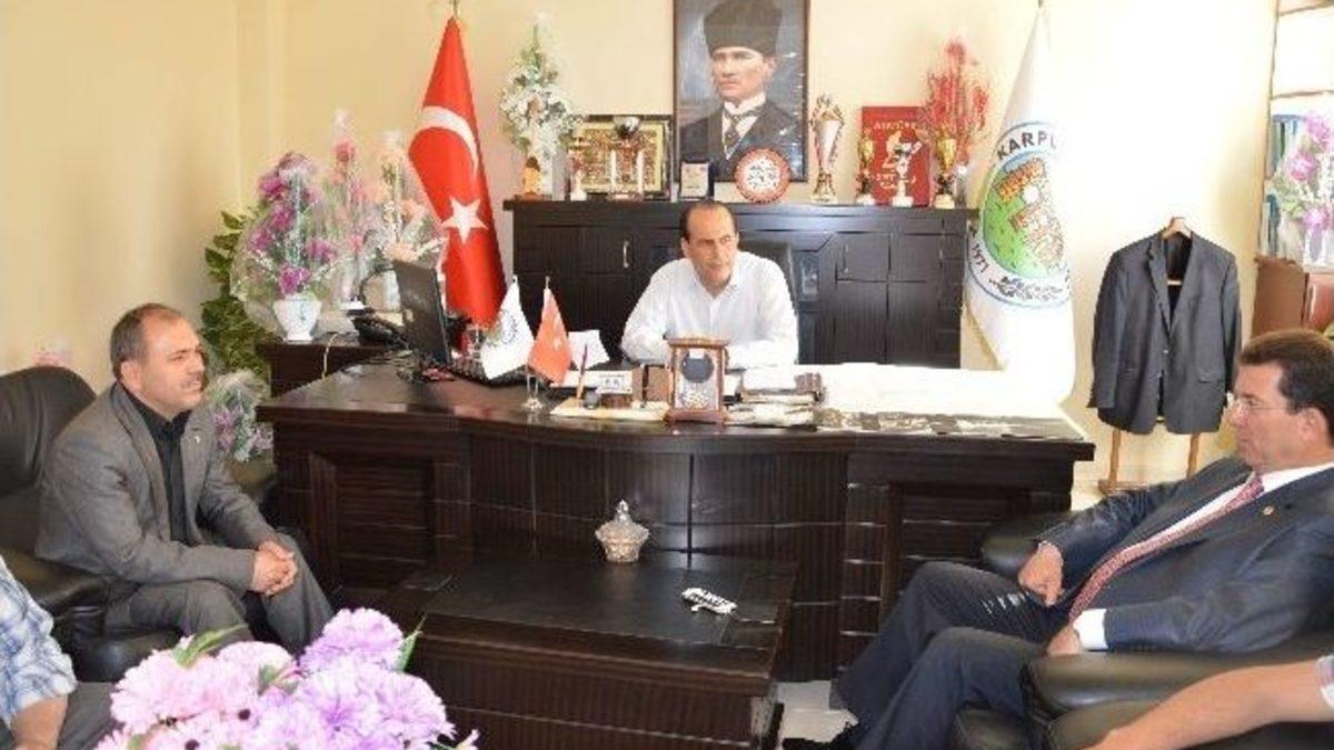 30 Mart yerel seçimlerinden MHP’den Karpuzlu Belediye Başkanı seçilen ancak partisinin grup kararına rağmen Aydın Büyükşehir Belediye Meclisine katılmayarak muhalefetin çoğunluğu kaybetmesine neden olduğu için partisinden ihraç edilen Karpuzlu Belediye Başkanı Tuğrul Ozan ile AK Parti arasında yaşanan sıcak diyalog dikkat çekti.AK Parti Karpuzlu İlçe teşkilatının danışma meclisi toplantısına katılan Karpuzlu Belediyesi’nin bağımsız belediye başkanı Tuğrul Ozan’ı AK Parti Milletvekili Gültekin Kılınç ve ilçe başkanı Erdal Yıldız makamında ziyaret etti. AK Parti ile Tuğrul Ozan arasındaki bu sıcak diyalog dikkat çekerken “Başkan Ozan’ın Ak Parti’ye mi geçiyor” yorumlarına neden oldu.Danışma meclisi dolayısıyla Karpuzlu’ya gelen AK Parti Aydın Milletvekili Gültekin Kılınç, parti binasında partililerle konuştuğu sırada Belediye Başkanı Tuğrul Ozan Ak Parti’ye geldi. Belediye hizmetlerinin daha sağlıklı yürümesi için milletvekilinden destek isteyen Belediye Başkanı Tuğrul Ozan, MHP’nin yaşananları abartıp kendisini anlamadığını ifade etti. Karpuzlu’nun yıllardır hizmete aç olduğunu ifade eden Ozan; “Karpuzlu Belediyesi olarak üzerimize düşeni yapacağız. Sizler de zaten ihtiyaçlarımızı biliyorsunuz. Sizlerden gelecek olan hizmet ve destekleri bekliyoruz. Karpuzlu yıllardır hizmete aç bir ilçe. Belki ben o tavrı ondan dolayı koydum. Seçimden sonra partim anlamakta zorlandı, abarttılar. Ama hizmet alacağıma inanıyorum. Sizlerden de çok güzel hizmetler bekliyoruz” diyerek Milletvekili Kılınç’tan destek istedi.Karpuzlu Belediye Başkanı Tuğrul Ozan’ın bu konuşması üzerine AK Parti’nin 77 milyonu kucaklayan bir anlayışa sahip olduğunu ifade eden Ali Gültekin Kılınç, üstlerine düşeni yapacakları sözünü verdi.HEMEN İADEİ ZİYARETTE BULUNULDUToplantının ardından İlçe Başkanı Erdal Yıldız ile birlikte Karpuzlu Belediyesi’ne giderek ‘Hayırlı olsun’ dileklerini ileten AK Parti Aydın Milletvekili Gültekin Kılınç, bir süre Başkan Tuğrul Ozan ile görüştü.