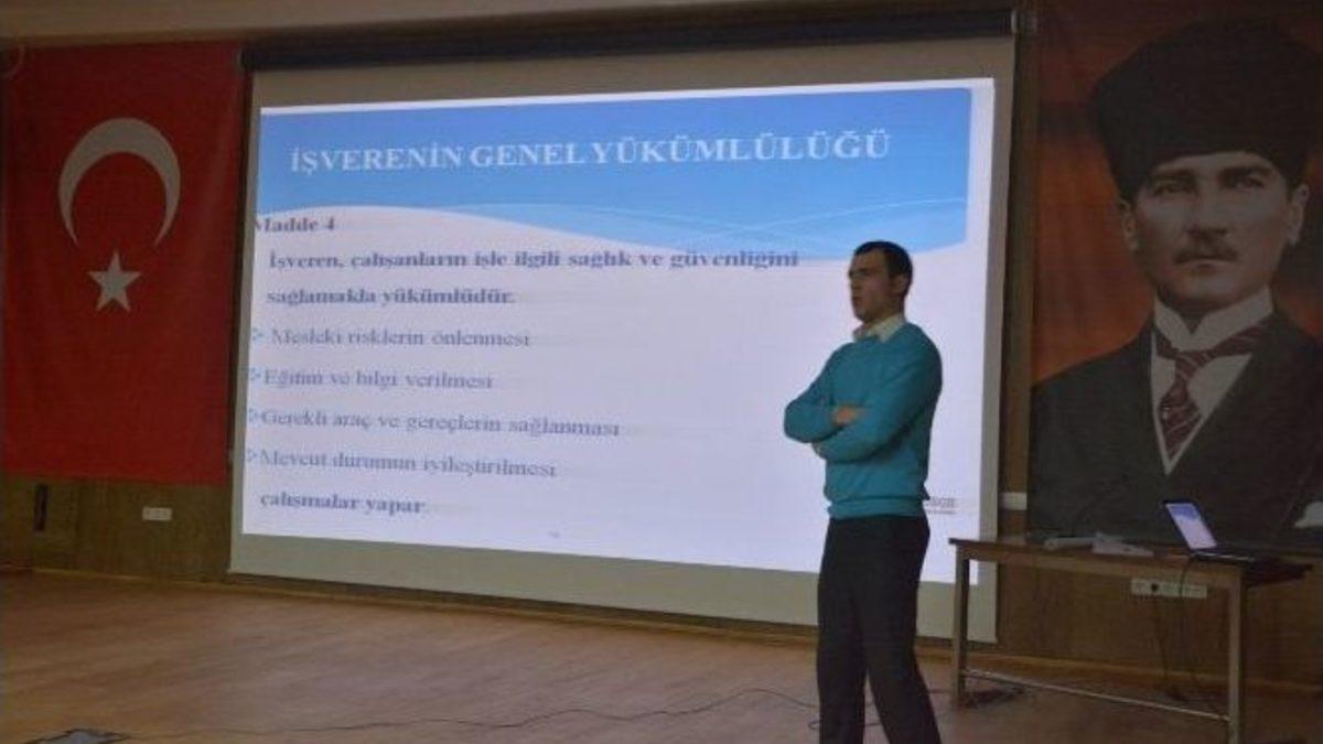 Kars Belediyesi, 6331 sayılı yasa gereği iş sağlığı ve güvenliği eğitimlerine başladı.Belediyenin bütün birimlerinde yaklaşık 700 personeli kapsayacak iş sağlığı eğitimi Belediye Başkanı Murtaza Karaçanta’nın talimatıyla iş sağılığı ve güvenliği uzmanı Esra Deniz öncülüğünde 15 gün süre içerisinde çalışma hayatındaki iş risklerini farklı saatleri kapsayan eğitimler belediyenin çok amaçlı salonunda başladı.Başkan vekili, yardımcılar, birim müdürleri ve 70 personelin katılımıyla başlayan eğitimler, her gün farklı birimlerde tehlike sınıflarına göre periyodik olarak devam edecek.Esra Deniz. “İş güvenliği nedir? İş güvenliği yasasını ve niçin olması gerektiği” hakkında bilgiler verdi. Sosyal güvenlik kurumuna ait çalışma hayatına bağlı son yıllarda yaşanan iş kazaları ve meslek hastalıkları hakkında istatistiksel bilgiler sundu.Sonuç olarak sadece bir iş yerinde değil bir ülkede iş güvenliği varsa orada sağlık ve mutluluk vardır. İş güvenliği yoksa can kaybı, sakatlık, hastalık, para ve zaman kaybı vardır. O halde sloganımız ‘önce iş güvenliği’ ile başlayan çalışmaların başarıyla sürmesi dileğinde bulunuldu.