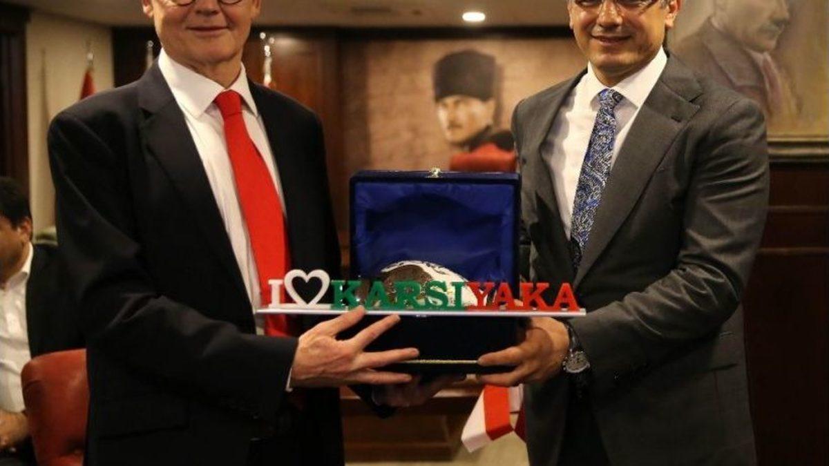 Pınar Karşıyaka-Monaco basketbol maçı için İzmir’e gelen Monaco Prensliği Başbakanı Serge Telle, Karşıyaka Belediyesini ziyaret etti.Monaco Prensliği Başbakanı Serge Telle, İzmir ziyareti sırasında Karşıyaka Belediyesi’nin de konuğu oldu. Başbakan için belediye önünde karşılama töreni düzenlendi. Bando, İstiklal Marşı ile birlikte Monaco Milli Marşını da çaldı. Karşıyaka Belediye Başkanı Hüseyin Mutlu Akpınar Başbakan Telle’ye, Kadın Kooperatifi tarafından yapılan vazo, fincan takımı ve anıt maketini hediye etti. Telle ise Monaco forması ve atkı takdim etti. Ziyarete Başkan Akpınar’ın eşi Zehra Akpınar, Monaco Fahri Konsolosu İlhami Aygün ve meclis üyeleri de katıldı.Karşıyaka Belediye Başkanı Hüseyin Mutlu Akpınar, “Bizler, ulu önder Atatürk’ün evlatları olarak; dostluğun barışın, kardeşliğin en üst seviyede devam etmesi için çalışan insanlarız. Sizleri ağırlamak bizim için çok önemli. Birlikte yeni projeler üreteceğimize eminiz” dedi.“Aynı takımdayız”Monaco Başbakanı Serge Telle ise “Sıcak karşılama için teşekkür ediyorum. Basketbol maçı için bir araya geldik ancak kardeşlik ve geleceğe bakış açısından biz aynı takımız” diye konuştu.