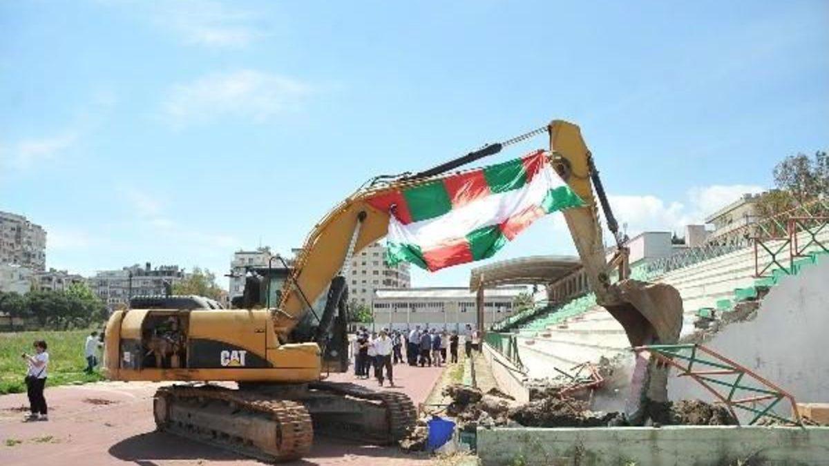 Ergin KARATAŞ/İZMİR, Yıkım çalışması öncesi tesisin etrafındaki tel örgüler kaldırıldı. Karşıyaka İlçe Stadı'ndaki söküm ve yıkım çalışmaları, kullanılmayan alanlardan devam edecek. Projenin kamulaştırma ve inşaat ruhsatı çalışmaları ise henüz bitmedi. Karşıyaka Stadı'yla aynı tarihlerde ihalesi yapılan Göztepe Gürsel Stadı'nın inşaatıyla ilgili henüz somut adım atılmadı.