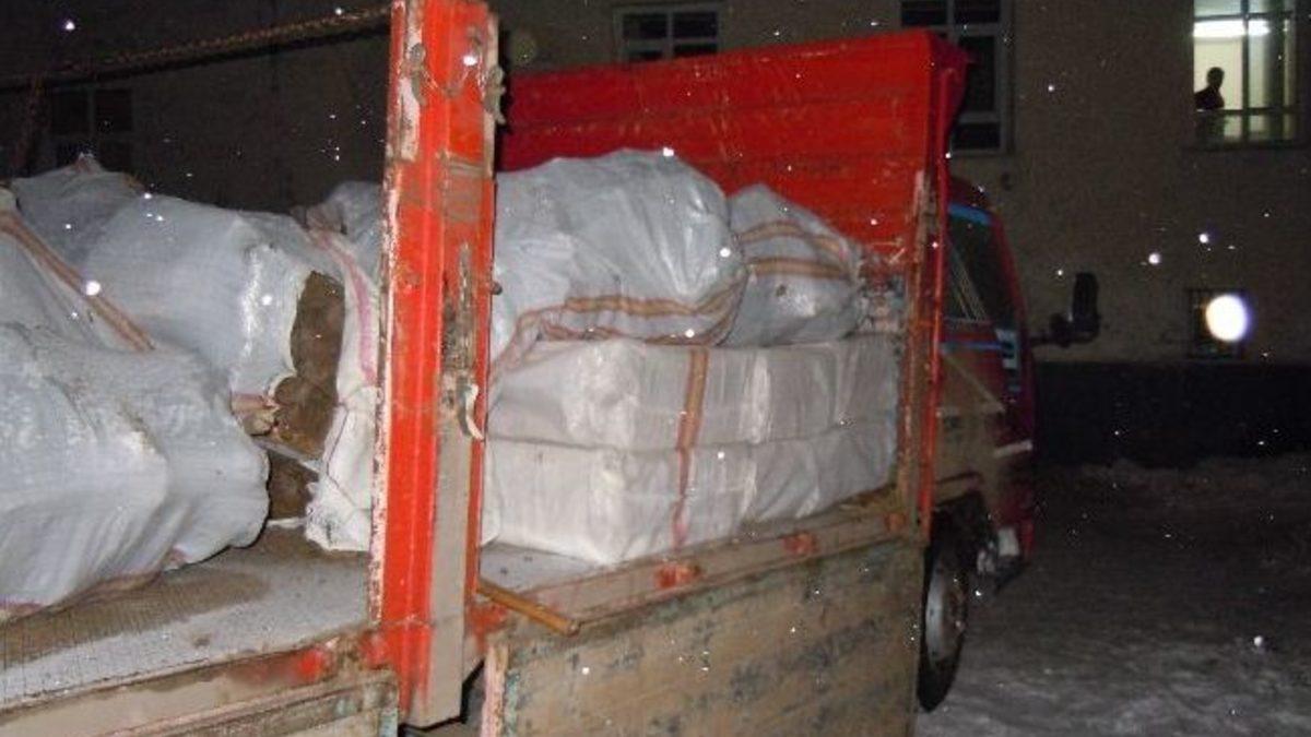 Kars’ta polisin takip ettiği ot yüklü kamyondan kaçak sigara çıktı.