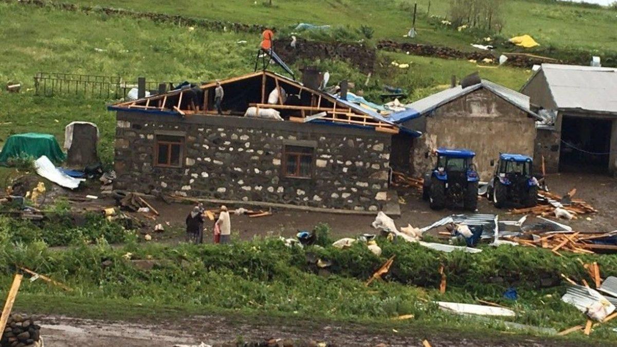 Kars ve çevresinde etkili olan yağmur ve fırtına çatıları yerinden söktü.Kars’ın Susuz İlçesi’ne bağlı Kırkpınar Köyü’nde yağmurla birlikte etkili olan ve hızı saatte 100 kilometreyi bulan fırtına, çatıları yerinden sökerek metrelerce uzağa fırlattı.Fırtına sonrası ortaya çıkan manzara ise cep telefonlarıyla kaydedildi. Çok sayıda evin çatısının uçtuğu köyde can kaybı yaşanmaması ise teselli oldu.