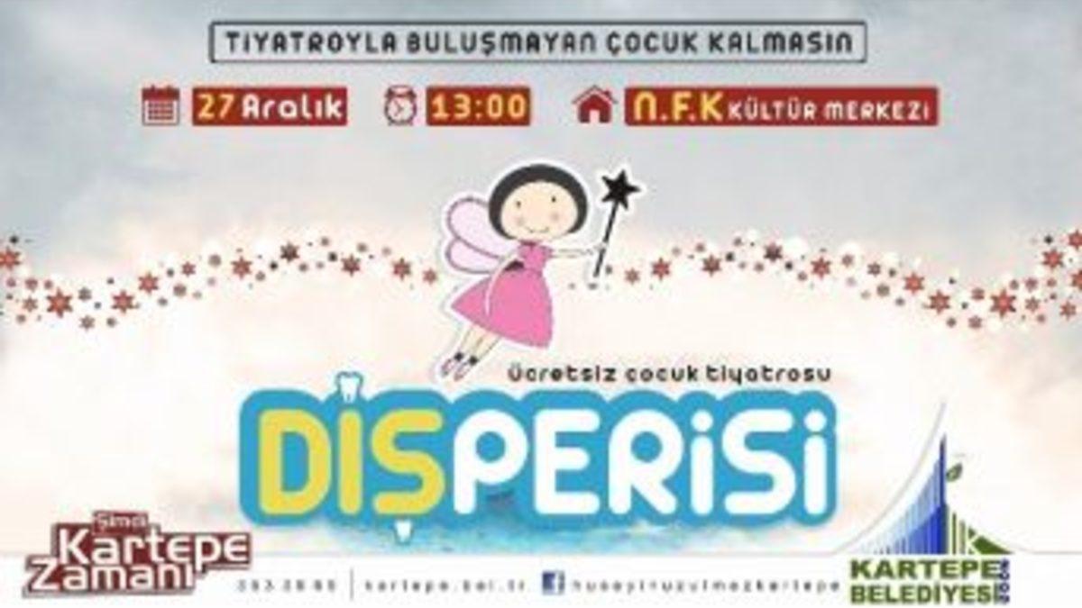 Kartepe Belediye Başkanı Hüseyin Üzülmez, çocukları günlük yaşantının içinde güzel şeylere motive etmek, hayal dünyalarını zenginleştirerek, eğlendirirken düşündürmek amacıyla tiyatro sanatı ile buluşturmaya devam ediyor.Kartepe’de tiyatroyla buluşmayan çocuk kalmasın düşüncesinden hareketle her 15 günde bir ücretsiz çocuk tiyatroları ile minikleri buluşturan Kartepe Belediyesi, 27 Aralık 2014 cumartesi günü de Dişperisi adlı oyunu çocukların beğenisine sunacak.Kartepeli çocukların sosyal ve kültürel gelişimlerine katkı sağlamak, onları tiyatro sanatı ile buluşturmak amacıyla ücretsiz çocuk tiyatroları cumartesi günü Necip Fazıl Kısakürek Kültür Merkezi’nde saat 13.00’de Dişperisi adlı çocuk oyunu ile devam edecek.