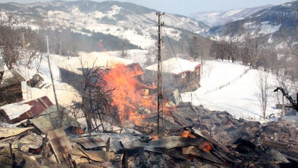 Kastamonu’nun Bozkurt ilçesinde çıkan yangında 7 ev kullanılamaz hale geldi.Edinilen bilgiye göre, Bozkurt ilçesi Ulu köyünde Erol Şengür’e ait evde bilinmeyen bir nedenle başlayan yangın, kısa sürede büyüyerek komşu evlere sıçradı. Alevleri gören köylülerin haber vermesi üzerine olay yerine Bozkurt Belediyesi, Bozkurt Orman İşletme ve Abana Belediyesi itfaiye ekipleri sevk edildi. Olay yerine gelen çok sayıda itfaiye ekibinin müdahalesi ile yangın kontrol altına alınarak söndürüldü. Yangında 7 ev, içindeki eşyaları ile birlikte yanarak kül oldu.Can kaybının yaşanmadığı yangında yanan evlerden bazılarının sahiplerinin İstanbul’da oldukları öğrenildi. Jandarma ekipleri yangın hakkında inceleme başlattı.