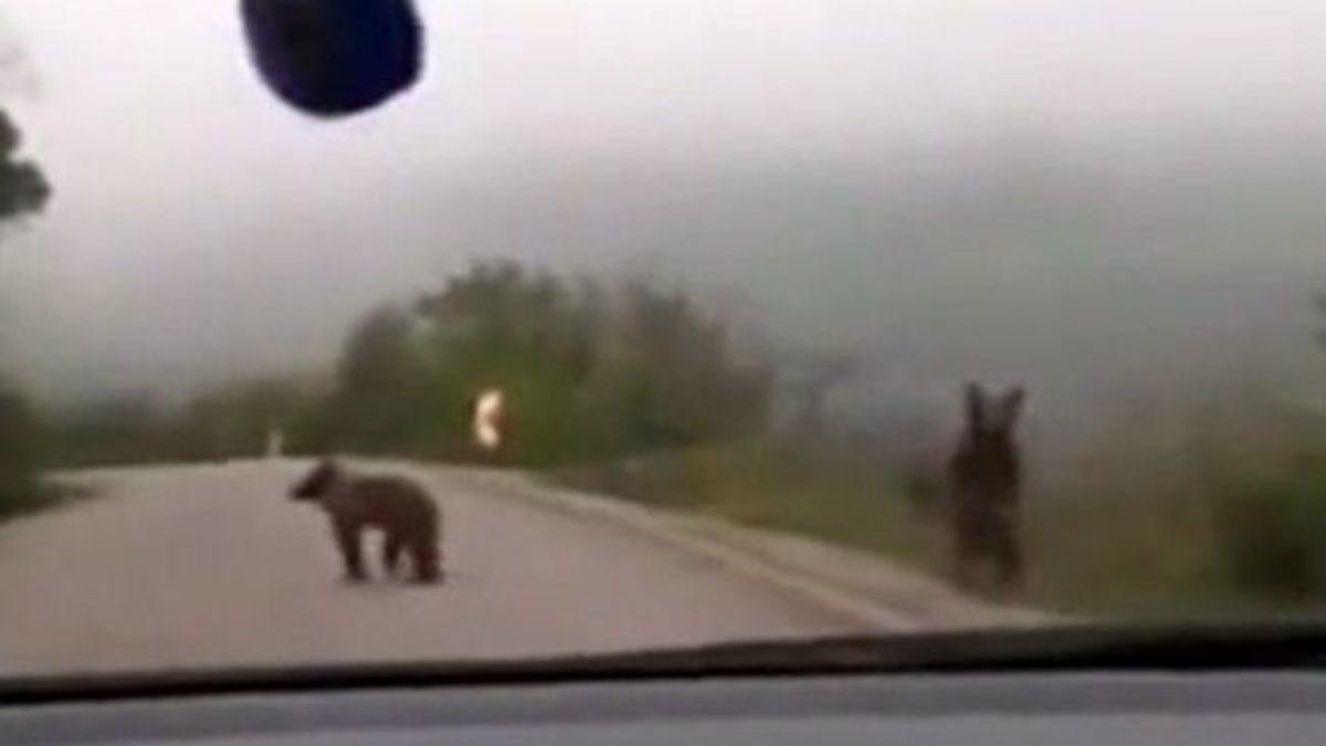 Kastamonu’da “Dikkat! Taş Düşebilir, Ayı Çıkablir” sözünü doğrular şekilde, vatandaşların yolda önüne 2 ayı yavrusu çıktı.Kastamonu’nun Cide ilçesine bağlı Soğuksu köyü civarlarında vatandaşlar, karşılarına çıkan yavru ayıları amatör kamera ile görüntüledi. Yolda ilerledikleri bir anda önlerine 2 ayı yavrusu çıkan vatandaşlar, önce ayı yavrularını kanguru zannetti. Kısa bir paniğin ardından vatandaşlar, çıkan hayvanın ayı yavrusu olduğunu anladı. Yavru ayıları çeken vatandaşların araç içerisindeki panikleri ise kameraya yansıdı. Vatandaşların önüne çıkan yavru ayılar, Kastamonu’nun girişinde yazan, “Dikkat! Taş Düşebülü, Ayı Çıkabülü” sözünü adeta doğrular nitelikte oldu. O anlarda ise, araç içerisinde bulunanlardan biri, “Kanguru sandım” diyor. Diğer yandan da araba içerisinde bulunanların heyecanı seslerinden belli oluyor. Ayrıca korktukları gözlenen vatandaşlar, yavru ayıları yoldan çıkarabilmek içinde bir süre uğraşıyor. Yavru ayılar, aracı fark ettikten sonra ormanlık içerisine doğru kaçıyor. Daha sonra vatandaşlar, hızla yavru ayıların olduğu bölümden annesinin geleceğini tahmin ederek uzaklaşıyor.