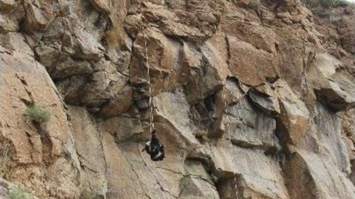 Elazığ’ın Karkoçan ilçesinde 5 gün önce kayalıklardan düşen 2 keçi 70 metre yükseklikten AKUT ekibi tarafından 12 saat süren çalışma sonucu kurtarıldı.Edinilen bilgiye göre, Elazığ’ın Karakoçan ilçesine bağlı Alayağmur köyü Zil mezrasında Ali Düzgün’e ait 2 keçi 5 gün önce kayalıklardan düşerek mahsur kaldı. 70 metrelik yükseklikteki kayalıkta mahsur kalan keçilerini kurtaramayan Düzgün, Arama Kurtarma Derneği (AKUT) Bingöl Şubesi'nden yardım istedi. Olay yerine giden 9 kişilik AKUT ekibi, bölgede keşfi yaptıktan sonra keçileri kurtarma çalışmalarına başladı. Hazırlıklarını tamamlayan kurtarma ekibinden 1 kişi keçilerin bulunduğu noktaya indi. Keçilerin sakinleşmesinden sonra kurtarma görevlisi sırayla keçileri halatlara bağlayarak kayalıklardan aşağı indirdi. 5 gündür su içmeyen keçilere AKUT ekibi, elleriyle su içirdi.Keçileri kurtulan Ali Düzgün, "Keçilerim 5 gün mahsur kaldı, köylünün yardımıyla kurtarmak istedik uzun uğraşlar verdik ama kurtaramadık. AKUT Bingöl birimini aradım Allah razı olsun gelip keçilerimi buradan kurtardılar, çok teşekkür ediyorum” dedi.AKUT Bingöl ekip lideri Ahmet Buzrul, “Bize ihbar gelince 9 kişilik ekiple Bingöl’den yola çıkarak bölgeye gittik. Kurtarma dahil operasyon 12 saat sürdü. Bizim için nefes alan her canlının yaşam hakkı vardır. Bir adım bir nefes sloganıyla yola çıktık. Hayvanları bulunduğu yerden indirdik ve sağ salim sahibine teslim ettik” diye konuştu.