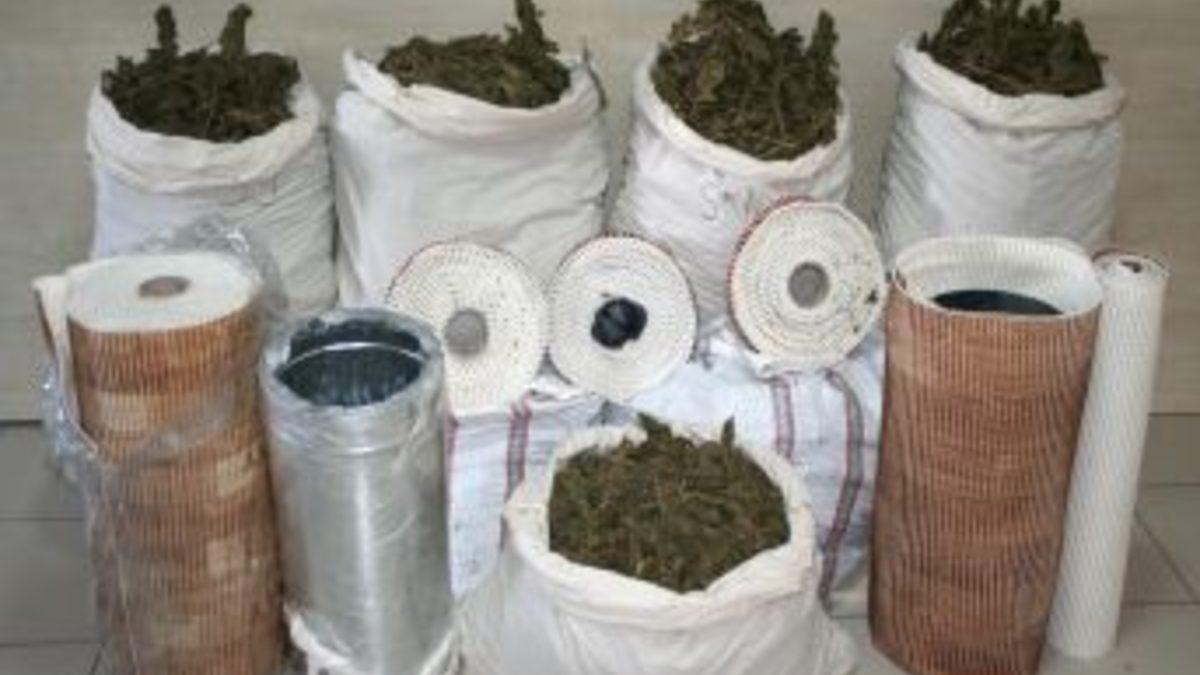 İzmir'de düzenlenen narkotik operasyonunda, rulo haline getirilen kaydırmaz halı malzemesinin içine gizlenmiş esrar ele geçirildi.