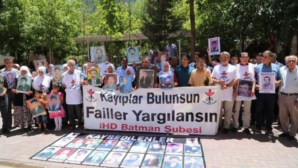 İnsan Hakları Derneği (İHD) Batman Şubesi tarafından her hafta düzenlenen “Kayıplar Bulunsun Failler Yargılansın" eylemli 279'uncu haftasına girdi.İHD Batman Şubesi, bugün Gülistan Caddesi İnsan Hakları Anıtı önünde düzenlediği 'Kayıplar Bulunsun Failler Yargılansın“ eylemi 279. haftasını geride bıraktı. Eylemde bir araya gelen İHD yöneticileri, kayıpların fotoğraflarını sergiledi. Düzenlenen eylemde bir açıklama yapan İHD Batman Şube yöneticisi Barış Eviz, sorumluların bulunup yargılanmasını gerektiğini ifade etti. Eriz, 279 haftadır kayıp yakınları ile alanda olduklarını belirterek, şunları söyledi:"Onları yüreğimizden, bedenimizden ve ruhumuzdan kopararak alıp götürdüler. Kaybedilenler bulunup, failler yargılanıncaya kadar eylemlerimiz devam edecek."Yapılan açıklamanın ardından grup yaptığı 5 dakika oturma eylemiyle gerçekleştirdi.