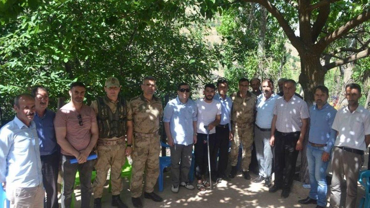 Batman’ın Sason İlçe Kaymakamı Ökkeş Beyaz, geçtiğimiz günlerde Karameşe köyü kırsalında teröristler tarafından açılan taciz ateşinde yaralanan Güvenlik Korucusu Necmettin Karabulut’u Çakırpınar köyünde bulunan baba evinde ziyaret etti.Güvenlik Korucusu Necmettin Karabulut’u baba evinde ziyaret eden Kaymakam Beyaz’a, Jandarma Tabur Komutanı Binbaşı Mehmet Kahya ve İlçe Jandarma Komutanı Yüzbaşı Yılmaz Güngör eşlik etti. Aileyle bir araya gelen Kaymakam Beyaz, Karabulut’un sağlık durumu hakkında bilgi aldı. Vatanın bölünmez bütünlüğü, milletin huzur ve refahı için mücadele eden güvenlik güçlerine yapılan saldırıları şiddetle kınadığını belirten Kaymakam Beyaz, yapılan saldırıların güvenlik güçlerini yıldıramayacağın ve terörün er geç bu topraklardan def edileceğini ifade etti.