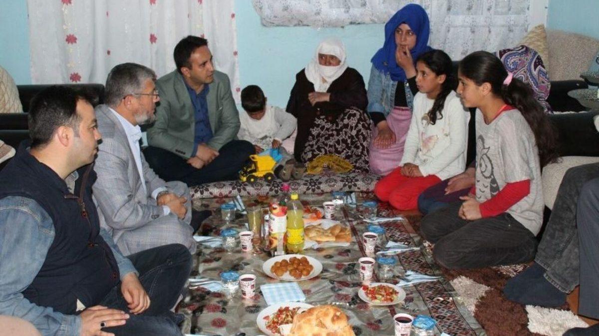 Van’ın Çaldıran Kaymakamı ve Belediye Başkan Vekili Tekin Dündar, iftar yemeğinde konuk olduğu aileye iki kişilik umre sözü verdi.Çaldıran Kaymakamı ve Belediye Başkan Vekili Tekin Dündar, iftar da Cumhuriyet Mahallesi’nde ikamet eden 9 nüfuslu Korkmaz ailesine misafir oldu. Çaldıranda hükümet konağında çalışırken hastalanarak 6 ay önce hayatını kaybeden Abdulcebbar Korkmaz’ın ailesine konuk olan Tekin Dündar, anne Kamer Korkmaz ve gelinini umreye gönderme sözü verdi. Ailenin 6 öğrencisinin eğitim masraflarını karşılayacağını da belirten Kaymakam Dündar, "Ramazan ayı rahmet ve mağfiret ayıdır. Ramazan boyunca vatandaşlarımızın evlerine konuk oluyoruz, olmaya da devam ediyoruz. Bu akşam ki iftarımızı da hükümet konağında kaloriferde çalışırken hastalanarak hayatını kaybeden Abdulcebbar Karkmaz’ın evinde konuk olduk. 9 nüfusu bulunan, kalpleri kırık aileye bir nebzede olsa mutlu edebilmek adına kapılarını çaldık. Ailede 6 öğrenci bulunmaktadır. Bu öğrencilerimizin tüm eğitim masraflarını karşılayacağız. Anne Kamer Korkmaz (71) ve gelini Çiçek Korkmaz’ı (40) umreye göndereceğiz. Her zaman ailemizin yanındayız. Kapımız her vatandaşımıza açık olduğu gibi bu ailemize de açıktır" dedi.Anne Kamer Korkmaz ise, Kaymakam ve Belediye Başkan Vekili Tekin Dündar’ın kendisini ve gelinine verdiği umre sözüne dayanamayarak gözyaşlarına boğuldu.Kaymakam Dündar’a İlçe Müftüsü Fikri Göncü, Sosyal Yardımlaşma ve Dayanışma Vakfı Müdürü Hüseyin Efeoğlu da eşlik etti.