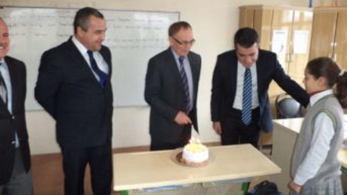 İlçe Kaymakamı İshak Çınar, doğum günü pastası kesilmeden önce öğrencilere hitaben yaptığı kısa konuşmasında, “ Hepiniz bizim için değerlisiniz. Hepinize ayrı ayrı saygı duyuyoruz. Bu dünyada mutlu ve umutlu olmanızı gerektirecek çok şeyler var. Başta hepiniz sağlıklısınız, siz bizim öğrencimiz olmanız dışında, evladımız, yeğenimizsiniz. Siz bu ülkenin geleceğisiniz. Bu duygularımızın bir ifadesi olarak bir proje kapsamında, okulunuzda bu gün yani 25 Ocak’ta doğan arkadaşınız Cennet Yavuz’un doğum gününü kutlamak istedik. Bunun için Belediye Başkanımız ve İlçe Milli Eğitim Müdürümüzle buradayız. Arkadaşınıza bundan sonraki hayatında sıhhat ve başarılar dilerim” dedi.