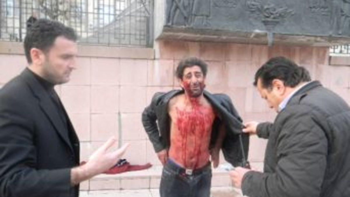 Tekirdağ’ın Malkara ilçesinde maddi sorunları nedeniyle cinnet geçiren 43 yaşındaki Hasan Meriç kaymakamlık binası önünde önünde jilet ile kendinin doğradı.