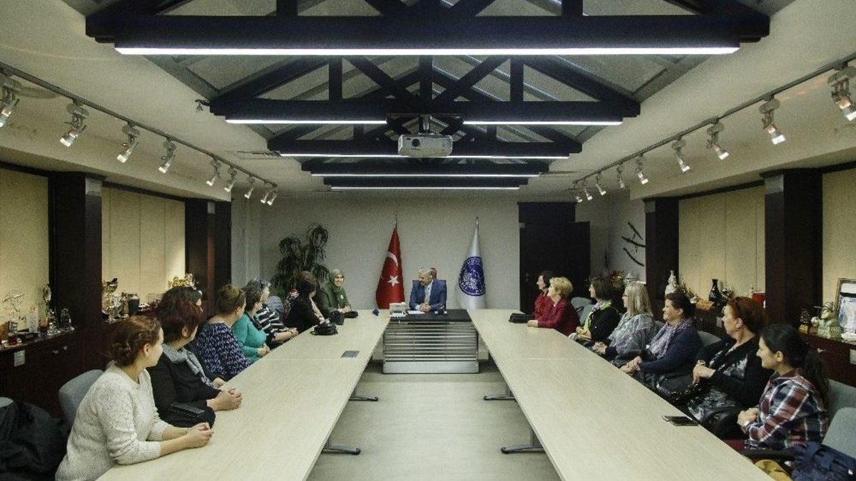 KAYMEK tarafından Bosna Hersek’in Mostar şehrindeki sanat ve mesleki eğitim kurslarına katılan kursiyerler, Büyükşehir Belediye Başkanı Mustafa Çelik’i makamında ziyaret etti. Başkan Çelik, Mostar’da her yıl 600 kişiye sertifika verdiklerini söyledi.KAYMEK’in Mostar Şehri’nde açtığı kurslara katılan kursiyerler, Kayseri’ye geldiler. KAYMEK’in Kayseri’deki kurs merkezlerini gezen kursiyerler, daha sonra KAYMEK Sanat ve Mesleki Eğitim Müdürü Mürşide Gonca Aslan ile Büyükşehir Belediye Başkanı Mustafa Çelik’i makamında ziyaret ettiler. KAYMEK Sanat ve Mesleki Eğitim Müdürü Aslan, Kayseri Büyükşehir Belediyesinin Mostar’a güzel hizmetler taşıdığını belirterek, buradan hizmet alan Boşnak, Sırp ve Hırvat kursiyerler adına bir grup kursiyerin Başkan Çelik’e bizzat teşekkür etmek için Kayseri’ye geldiklerini dile getirdi.Mostar ile Kayseri’nin kardeş şehir olduğunu ve bu iki şehir arasındaki kardeşliği daha da güçlendirmek için yapılan çalışmaların başında Mostar’da açılan KAYMEK kurslarının bulunduğunu dile getiren Başkan Mustafa Çelik, tamamen insani değerler çerçevesinde bu çalışmaları yaptıklarını ifade etti. Başkan Çelik, “Yüzlerce kilometre ötede kurs açıyoruz. Yılda 600 kişiye 10’dan fazla branşta kurs imkanı sunarak sertifika veriyoruz. Mostar’da açtığımız kurslar sadece Kayseri ve Mostar’ın kardeşliği pekiştirmiyor. Mostar’da yaşayan Hırvat, Sırp ve Boşnak dostlarımızla bir arada olmamızı sağlıyor. İnsanların diline, dinine, ırkına bakmadan tamamen insani değerlerle bu çalışmaları yapıyoruz” dedi.Ziyarette Başkan Çelik’e, Bosnalı kursiyerler tarafından yapılan bir tablo hediye edildi.