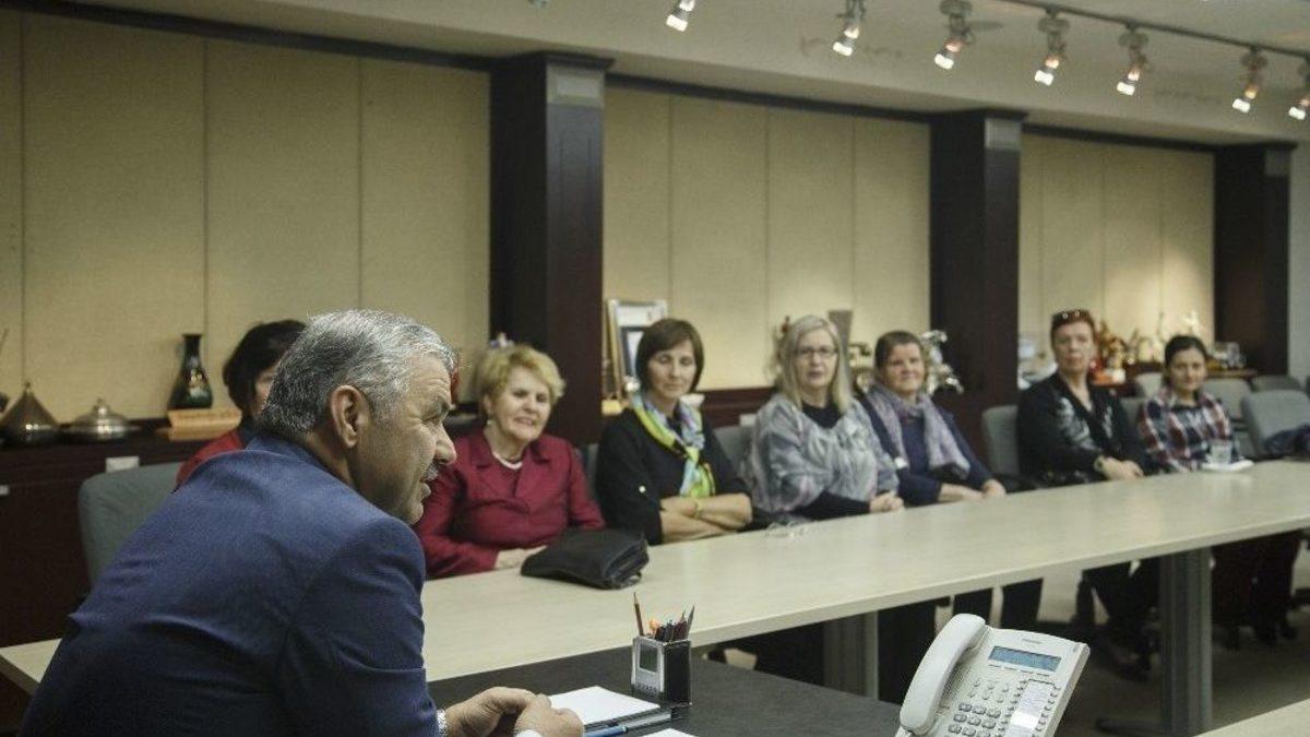 KAYMEK tarafından Bosna Hersek’in Mostar şehrindeki sanat ve mesleki eğitim kurslarına katılan kursiyerler, Büyükşehir Belediye Başkanı Mustafa Çelik’i makamında ziyaret etti. Başkan Çelik, Mostar’da her yıl 600 kişiye sertifika verdiklerini belirterek, “İnsanların diline, dinine, ırkına bakmadan, tamamen insani değerler çerçevesinde bu çalışmaları yapıyoruz” diye konuştu.KAYMEK’in Mostar Şehri’nde açtığı kurslara katılan kursiyerler, Kayseri’ye geldiler. KAYMEK’in Kayseri’deki kurs merkezlerini gezen kursiyerler, daha sonra KAYMEK Sanat ve Mesleki Eğitim Müdürü Mürşide Gonca Aslan ile Büyükşehir Belediye Başkanı Mustafa Çelik’i makamında ziyaret ettiler. KAYMEK Sanat ve Mesleki Eğitim Müdürü Aslan, Kayseri Büyükşehir Belediyesi’nin Mostar’a güzel hizmetler taşıdığını belirterek, buradan hizmet alan Boşnak, Sırp ve Hırvat kursiyerler adına bir grup kursiyerin Başkan Çelik’e bizzat teşekkür etmek için Kayseri’ye geldiklerini dile getirdi.Mostar ile Kayseri’nin kardeş şehir olduğunu ve bu iki şehir arasındaki kardeşliği daha da güçlendirmek için yapılan çalışmaların başında Mostar’da açılan KAYMEK kurslarının bulunduğunu dile getiren Başkan Mustafa Çelik, tamamen insani değerler çerçevesinde bu çalışmaları yaptıklarını ifade etti. Başkan Çelik, “Yüzlerce kilometre ötede kurs açıyoruz. Yılda 600 kişiye 10’dan fazla branşta kurs imkanı sunarak sertifika veriyoruz. Mostar’da açtığımız kurslar sadece Kayseri ve Mostar’ın kardeşliği pekiştirmiyor. Mostar’da yaşayan Hırvat, Sırp ve Boşnak dostlarımızla bir arada olmamızı sağlıyor. İnsanların diline, dinine, ırkına bakmadan tamamen insani değerlerle bu çalışmaları yapıyoruz” dedi.Ziyarette Bosnalı kursiyerler tarafından yapılan bir tablo Başkan Çelik’e hediye edildi.