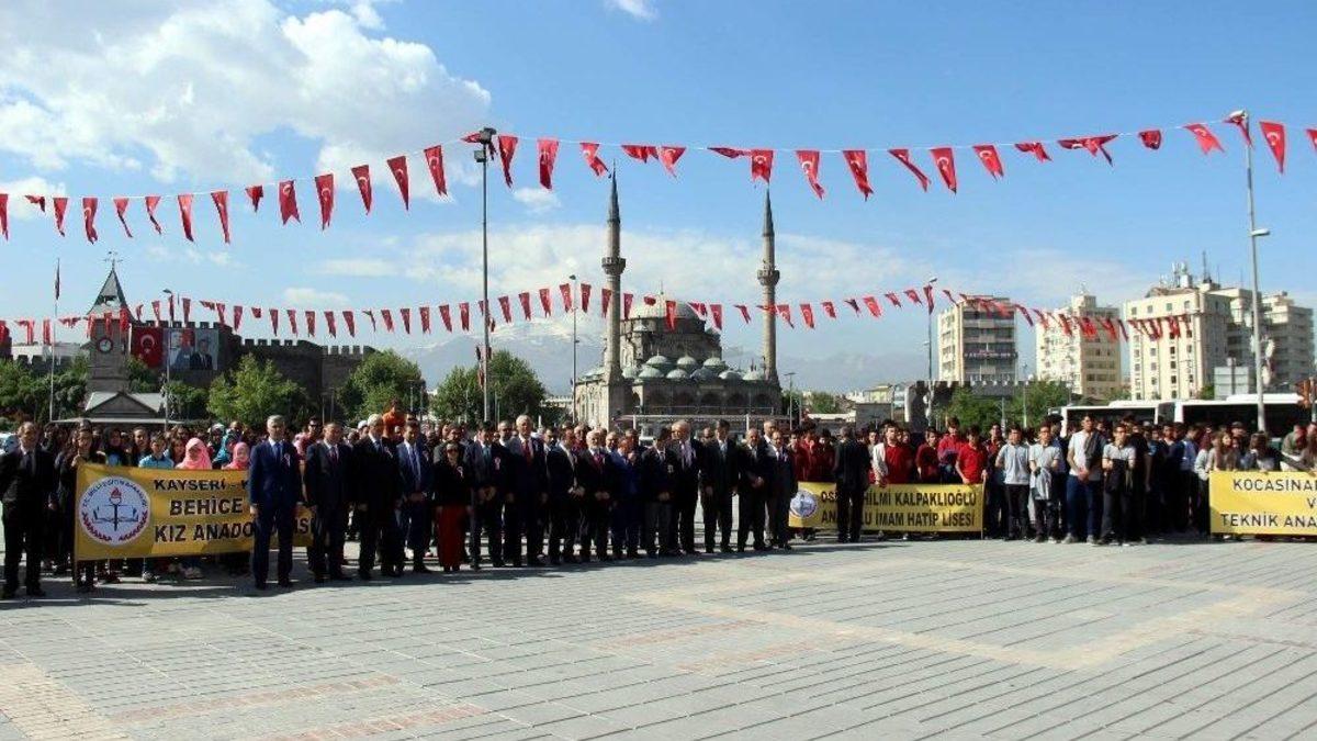 19 Mayıs Atatürk’ü Anma Gençlik ve Spor Bayramı, tüm yurtta olduğu gibi Kayseri’de de coşkuyla kutlanıyor.Kutlamalar çerçevesinde Cumhuriyet Meydanı’nda bulunan Atatürk Anıtı’na çelenk sunma programı düzenlendi. Gençlik ve Spor İl Müdürü Murat Eskici tarafından çelengin sunulmasının ardından saygı duruşunda bulunularak İstiklal Marşı okundu. Çelenk sunma programı sona ererken, İl Müdürü Eskici gazetecilere yaptığı açıklamada, “Gençlik Haftası 1 haftadır devam eden bir süreç. 19 Mayıs 1919’da yakılan bağımsızlık meşalesinin aynı heyecanla devam etmesi, aradan 98 yıl geçmesine rağmen gençliğimizin ülkemize, milletimize sahip çıkmasının göstergesidir bu bayram. 1 hafta süreyle bayram kutlamaları devam ediyor. Bunun ilk günü 15 Mayıs’ta çelenk sunmayla başlamıştı. 3 gün arkadaşlarımız Ankara’ya gitti. Orada Gençlik Merkezi Günleri yapıldı. Biz de orada 2 gün boyunca şehrimizi ve şehrimizde yapılan faaliyetleri tanıttık. Aynı şekilde ilimizde de bir hafta boyunca gençlik ve spor faaliyetleri hareketli bir şekilde devam etti. Bugün de burada tekrar 19 Mayısımızı kutlamak için çelengimizi sunduk. Aradan 98 yıl geçmesine rağmen ülkemize, devletine, milletine sahip çıkan gençliğimize teşekkür ediyorum” ifadelerini kullandı.19 Mayıs Atatürk’ü Anma Gençlik ve Spor Bayramı etkinlikleri yapılacak olan etkinliklerle devam edecek.