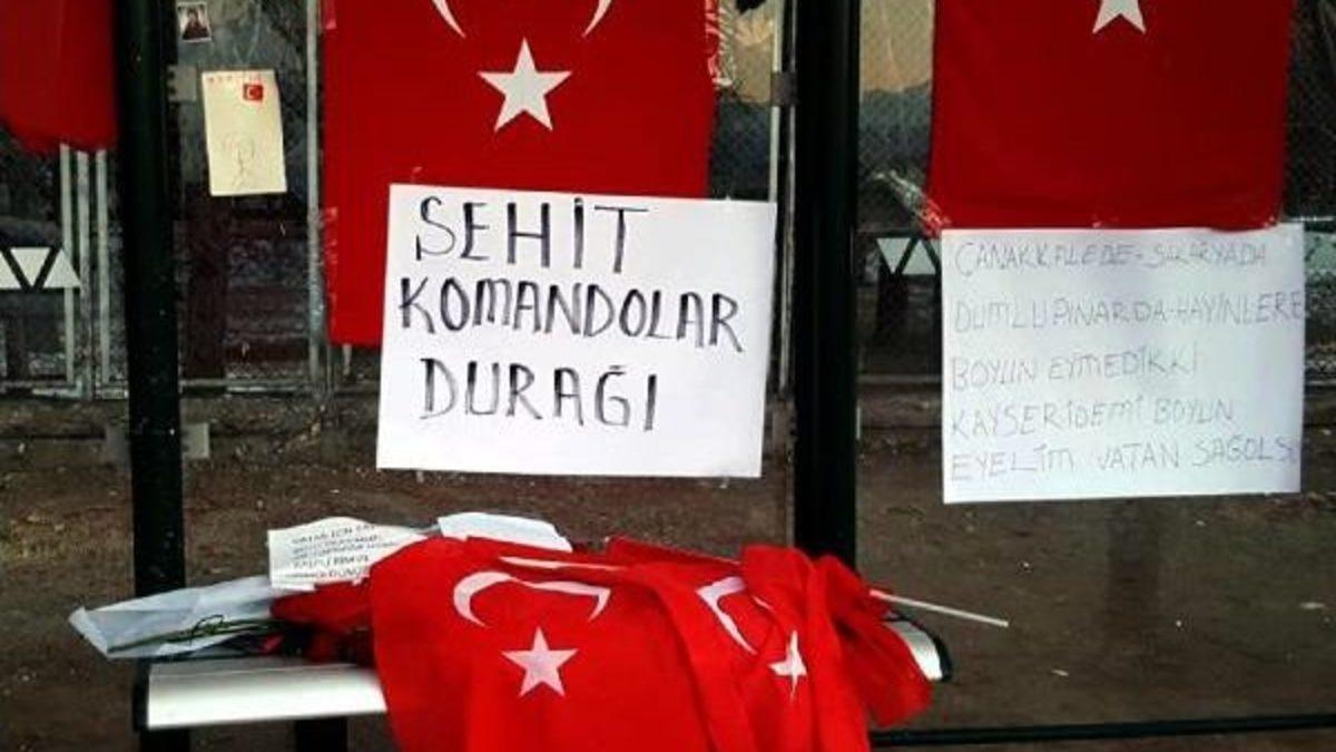 Oktay ENSARİ/ KAYSERİ, (DHA)- KAYSERİ'de cumartesi günü bombalı araçla düzenlenen, çarşı iznine çıkan 14 askerin şehit olduğu saldırının ardından hastanelerde tedavi gören yaralı sayısı 56'dan 30'a indi. 6 yaralının durumunun ciddiyetini koruduğu açıklandı. Saldırının olduğu Talas Caddesi'ndeki durağa, bölgede bulunanlar, 'Şehit Komandolar Durağı' adını verdi.