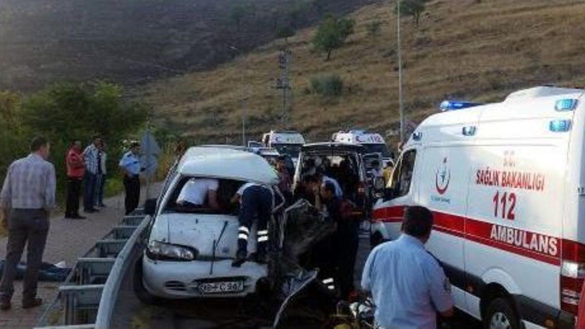 Gökhan KURT/KAYSERİ, Kaza, saat 08.00 sıralarında merkez Melikgazi İlçesi Küçükali Mahallesi Aliya İzzetbegoviç Caddesi’nde meydana geldi. Sürücüsü henüz öğrenilemeyen 38 FC 947 plakalı işçi servisi ile 40 yaşındaki Mehmet Aslan idaresindeki 38 GH 964 plakalı minibüs kafa kafaya çarpıştı. Olay yerine çok sayıda polis, sağlık ve itfaiye ekipleri gönderildi. Yaralanan 15 kişi, sağlık ekiplerinin ilk müdahalesinin ardından, ambulanslarla kentteki çeşitli hastanelere kaldırıldı. Çarpma sonucu minibüste sıkışan ve ismi henüz öğrenilemeyen sürücü ise, itfaiye ekipleri tarafından kurtarılarak tedaviye alındı. Çeşitli hastanelerde tedaviye alınan yaralıların, sağlık durumlarının iyi olduğu bildirildi. Polis, kazayla ilgili soruşturma başlattı