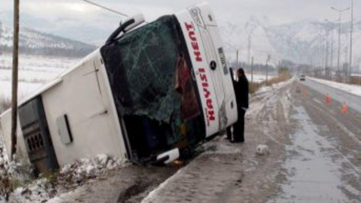 Kayseri’de kar yağışı ile birlikte kayganlaşan yolda bir otobüs devrildi. Kazada 14 kişi hafif şekilde yaralandı. Yaralılardan 11 yolcu ayakta tedavi edilerek taburcu edildi.