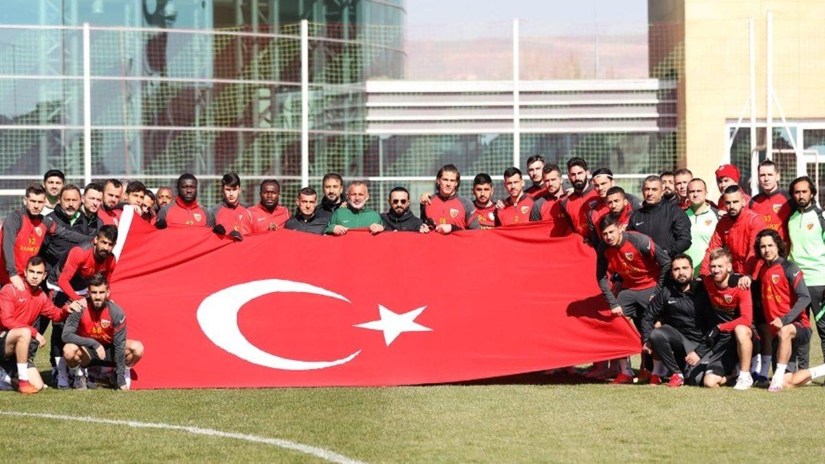 Ligde Aktaş Hatayspor ile karşılaşacak olan Hes Kablo Kayserispor, antrenman öncesinde, dün meydana gelen kazada şehit olan 11 askeri unutmadı. Türk bayrağı açarak şehitleri anan Hes Kablo Kayserisporlu futbolcular, Türk milletine ve şehit ailelerine baş sağlığı diledi.
