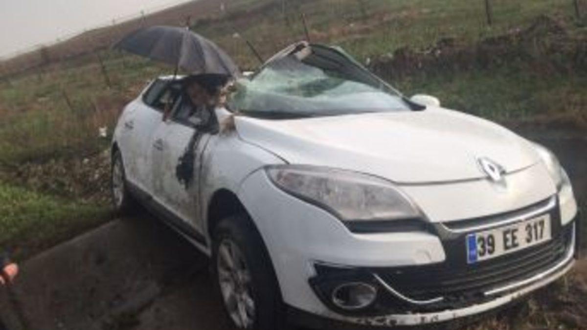Çorlu’da meydana gelen trafik kazasında kontrolden çıkan otomobil takla atarak yol kenarına savruldu. Kazada yaralanan ve otomobilde sıkışan yolcunun yağan yağmurdan etkilenmemesi için şemsiye ile tedbir alındı.Edinilen bilgilere göre kaza TEM Otoyolu’nun Çorlu kesiminde meydana geldi. Edirne yönünden İstanbul yönüne doğru gitmekte olan Erkan Ergün (48) idaresindeki 39 EE 317 plakalı otomobil sürücüsünün direksiyon hakimiyetini kaybetmesi sonucu kontrolden çıkarak takla attı. Kazada otomobil sürücüsü Erkan Ergün ile yolcu olarak bulunan Ayşe Atlı (47) yaralandı. Yaralı sürücü ambulansla hastaneye kaldırılarak tedavi altına alınırken araçta sıkışarak mahsur kalan yolcu kaza kırım ekipleri bölgeye gelene kadar vatandaşlar tarafından şemsiye ile koruma altına alındı. Ulaş Jandarma Komutanlığı ekipleri ile polis ekipleri de kaza yerine gelerek inceleme yaptı.Her iki yaralı da Çorlu Devlet Hastanesi Acil Servisi’ne kaldırılarak tedavi altına alındı. Kazayla ilgili olarak başlatılan soruşturma sürdürülüyor.