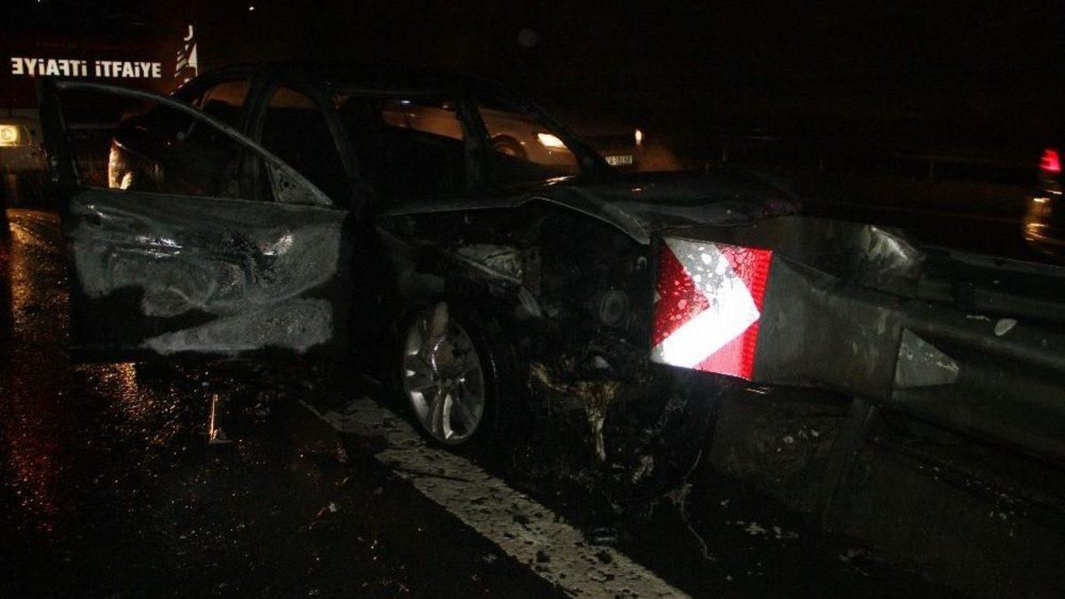 Kemerburgaz TEM Bağlantı Yolunda kaza yapan lüks araç yandı. Yanan araç kullanılamaz hale gelirken, yolda trafik yoğunluğu oluştu.Olay, saat 22.00 sıralarında Kemerburgaz TEM Bağlantı yolunda meydana geldi. Edinilen bilgiye göre, 34 ZH 8458 plakalı otomobilin sürücüsünün direksiyon hakimiyetini kaybetmesi sonucu yol ayrımındaki bariyere çarptı. Çarpmanın etkisiyle lüks araç bir anda alev alarak yanmaya başladı. Kısa sürede alevler arabayı sardı. İhbar üzerine olay yerine itfaiye ve polis ekibi sevk edildi. Olay yerine gelen itfaiye ekibi aracı söndürdü. Lüks araç kullanılamaz hale geldi. Araç nedeniyle yolda bir müddet trafik yoğunluğu oluştu. Aracın yoldan çekilmesinin ardından trafik akışı normale döndü.