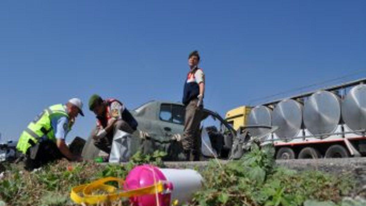 Balıkesir'de meydana gelen trafik kazasında anne ve baba öldü, 6 yaşındaki kızları ise ağır yaralandı. TIR'a çarpmanın etkisiyle otomobilin motor, kapı ve tekerleğinin metrelerce uzağa fırladığı görüldü. Kaza sonrası Balıkesir-Susurluk yolunda uzun araç kuyruğu oluşurken, ulaşım bir süre tek şeritten sağlandı.