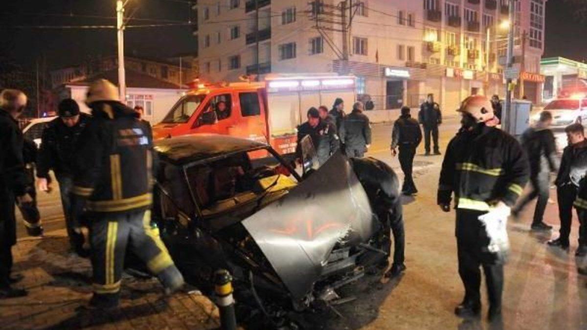 Hüseyin TÜCCAR/BURSA, Kaza Merkez Osmangazi ilçesi İnönü Caddesi'nde meydana geldi. Atatürk Caddesi yönünden Kent Meydanı'na doğru giden 27 yaşındaki Kerim Şaylık, yönetimindeki 16 SKM 92 plakalı otomobil aşırı hız nedeniyle kontrolden çıktı. Bir binanın duvarına çarptıktan sonra sürüklenen otomobil yoldaki bariyerlere vurarak durabildi. Hurda yığını haline dönen otomobilde Kerim Şaylık araç içinde sıkışırken ağabeyi 30 yaşındaki Çağdaş Şaylık ve arkadaşları; 27 yaşındaki Salih Demirci ile 28 yaşındaki Özden Abuca yaralandı.