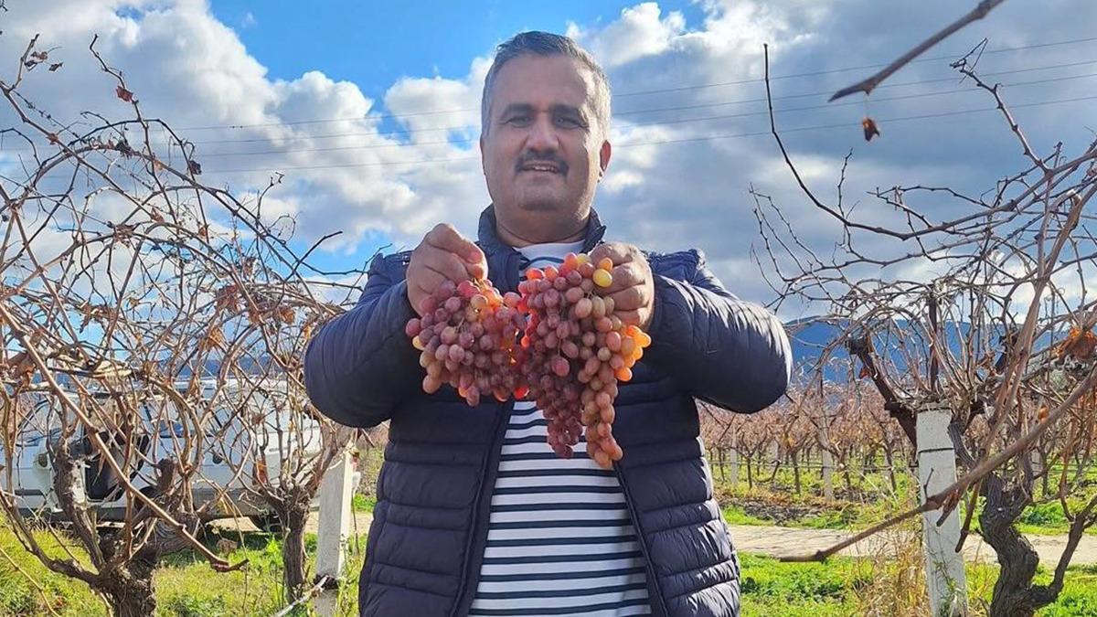 Crimson üzümü yetiştiren üretici Serhat Akkaya ise üzüm sezonunun sona erdiğini belirterek, "Bağımdaki Crimson üzümlerinden ayırdığım asmalardan topladığım üzümleri poşetleyerek konu komşuma ve arkadaşlarıma hediye ediyorum. Kış mevsiminde bile asmadan taze üzüm toplamak mümkün" diye konuştu.